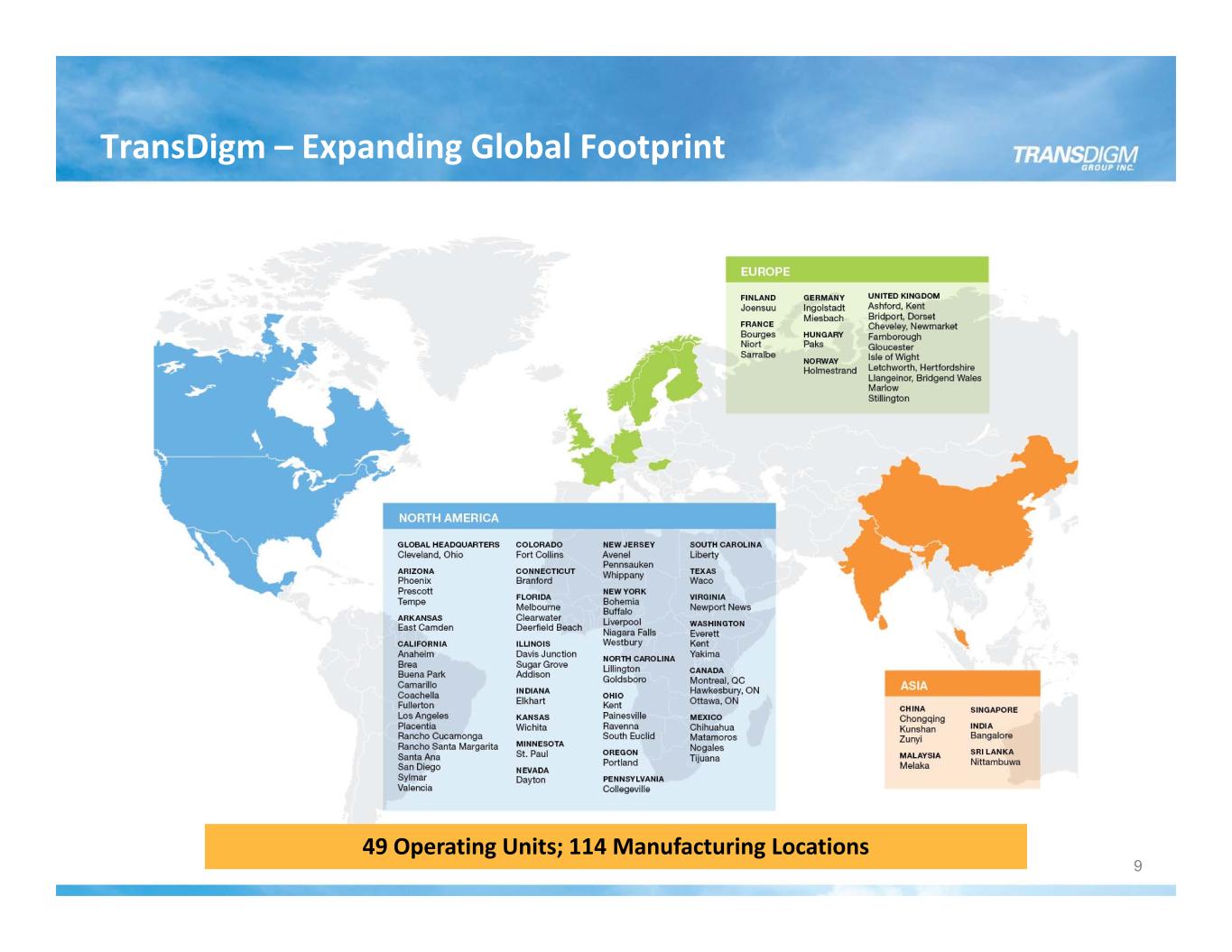TransDigm – Expanding Global Footprint 9 49 Operating Units; 114 Manufacturing Locations