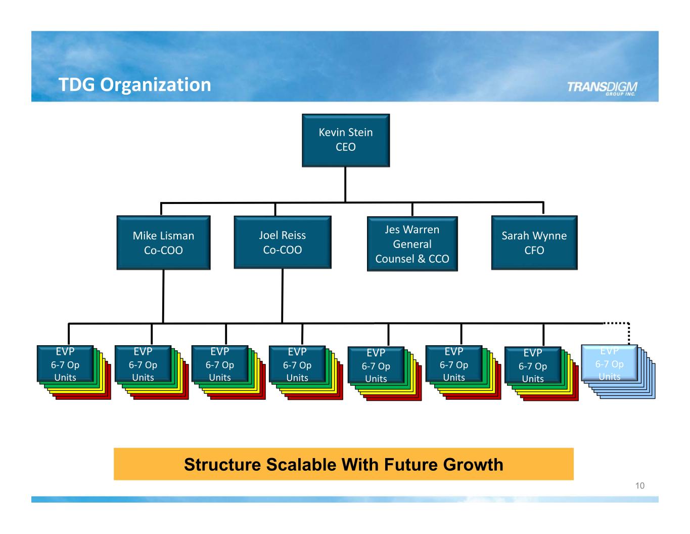 TDG Organization Kevin Stein CEO Mike Lisman Co‐COO Joel Reiss Co‐COO Jes Warren General Counsel & CCO Sarah Wynne CFO Structure Scalable With Future Growth EVP 6‐7 Op Units EVP 6‐7 Op Units EVP 6‐7 Op Units EVP 6‐7 Op Units EVP 6‐7 Op Units EVP 6‐7 Op Units EVP 6‐7 Op Units EVP 6‐7 Op Units 10