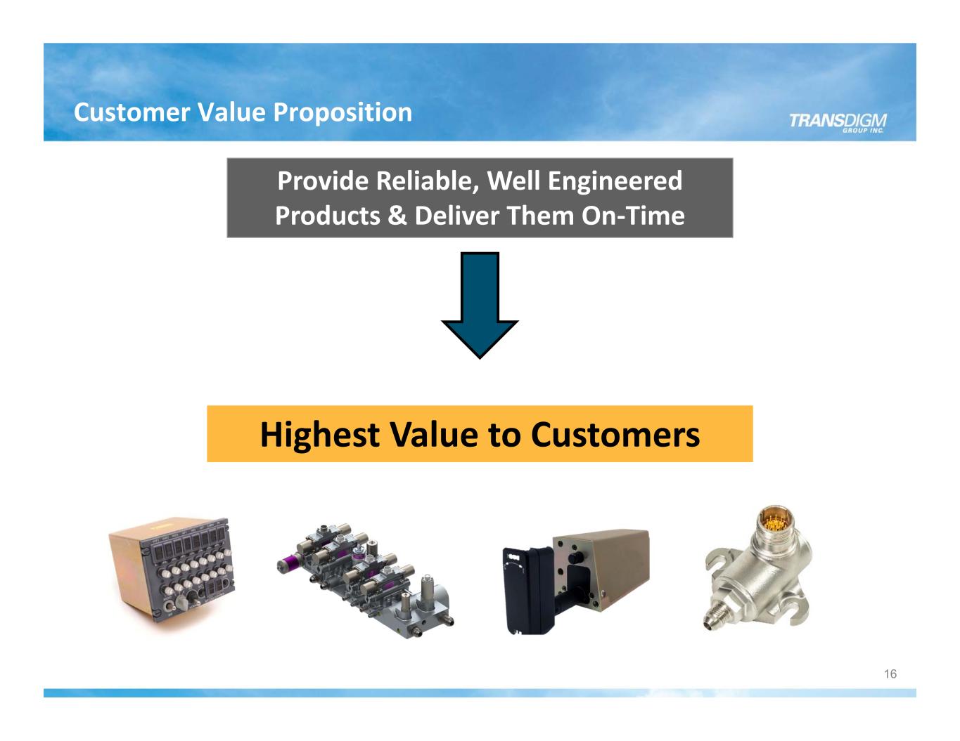 Customer Value Proposition Highest Value to Customers Provide Reliable, Well Engineered Products & Deliver Them On‐Time 16
