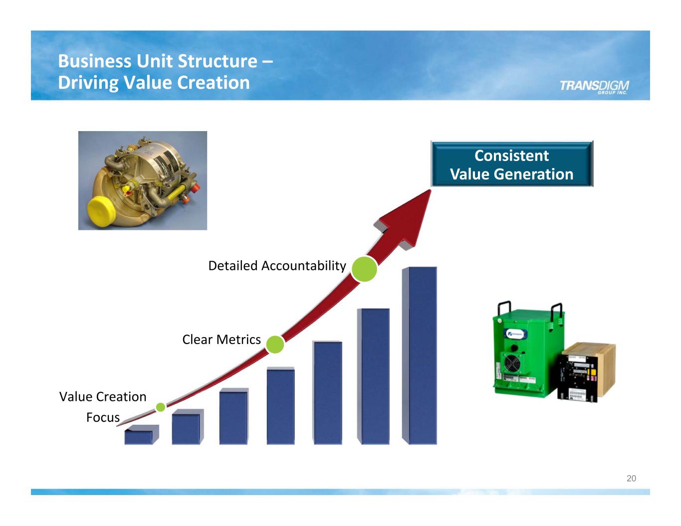 Business Unit Value Creation Grouping of Related Products Integrated Cross Functional Team Business Unit Manager Drives Performance Business Unit Teams Profitable New Business Productivity and Cost Improvement Value‐based Pricing Value Driver Focus Standardized Business Metrics Across Operating Units Quarterly Reviews and Mid‐Year Reviews Ownership of Results Accountability 19