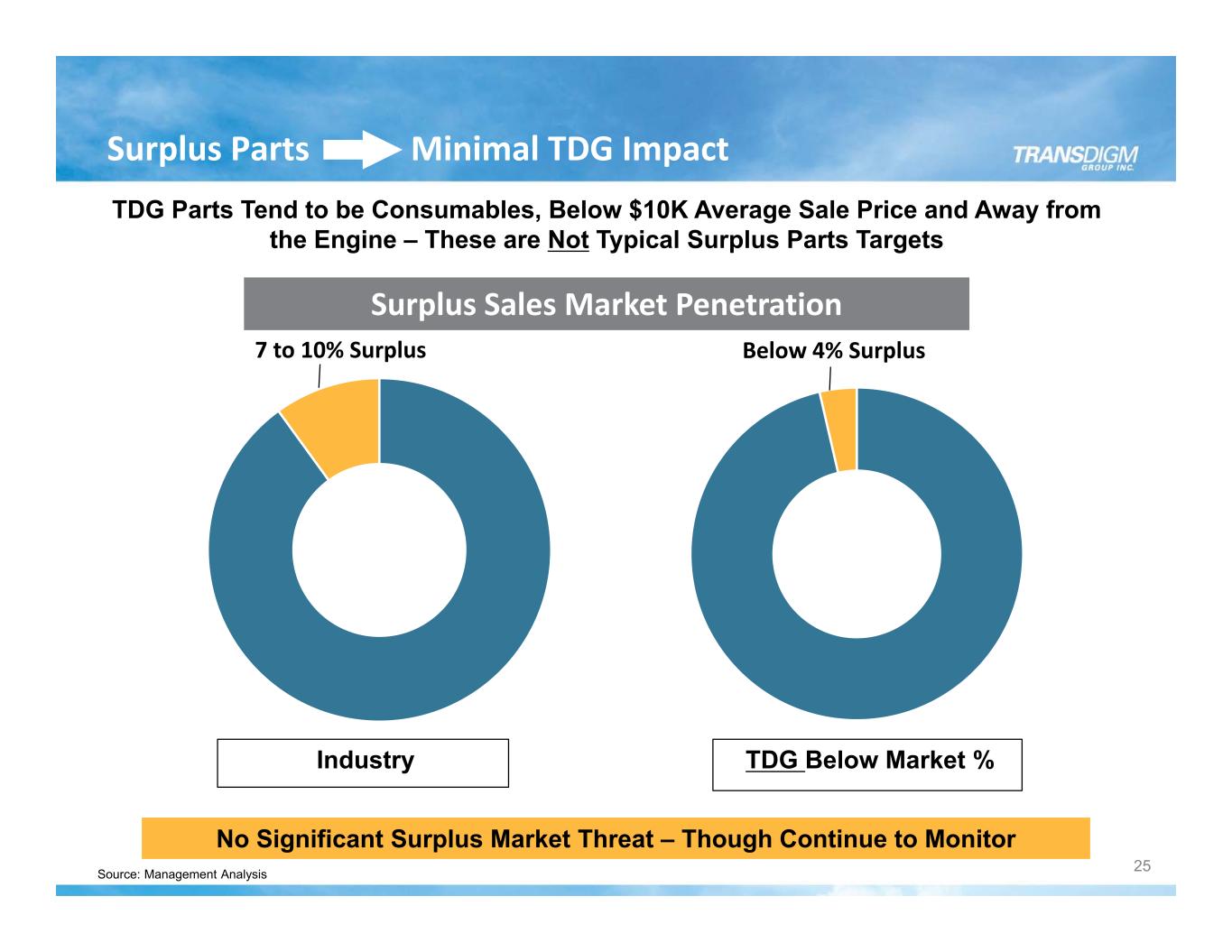 No Significant PMA Threat – At or Below Market Exposure Levels PMA Market Penetration 3rd Party PMA ≈ 1½% to 2½% 3rd Party PMA Less than 2% Total INDUSTRY Commercial Aftermarket $ Total TDG Commercial Aftermarket $ 24
