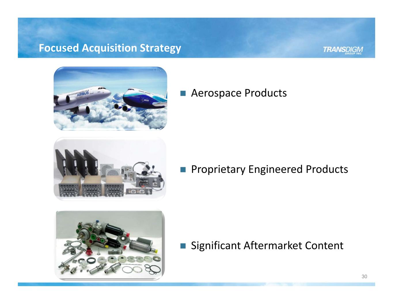 Focused Acquisition Strategy Aerospace Products Proprietary Engineered Products Significant Aftermarket Content 30