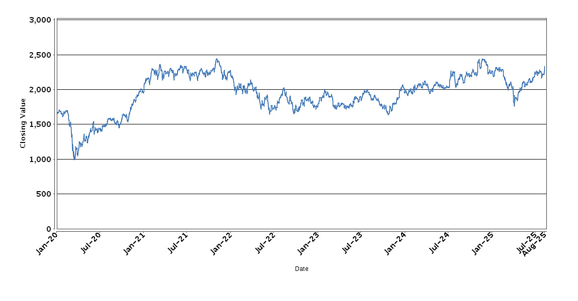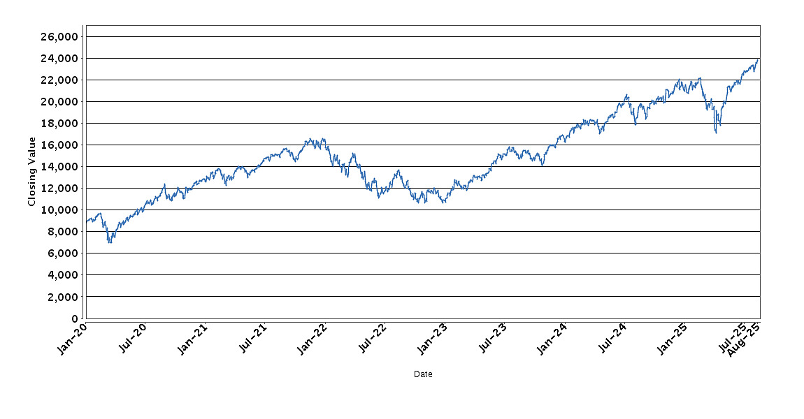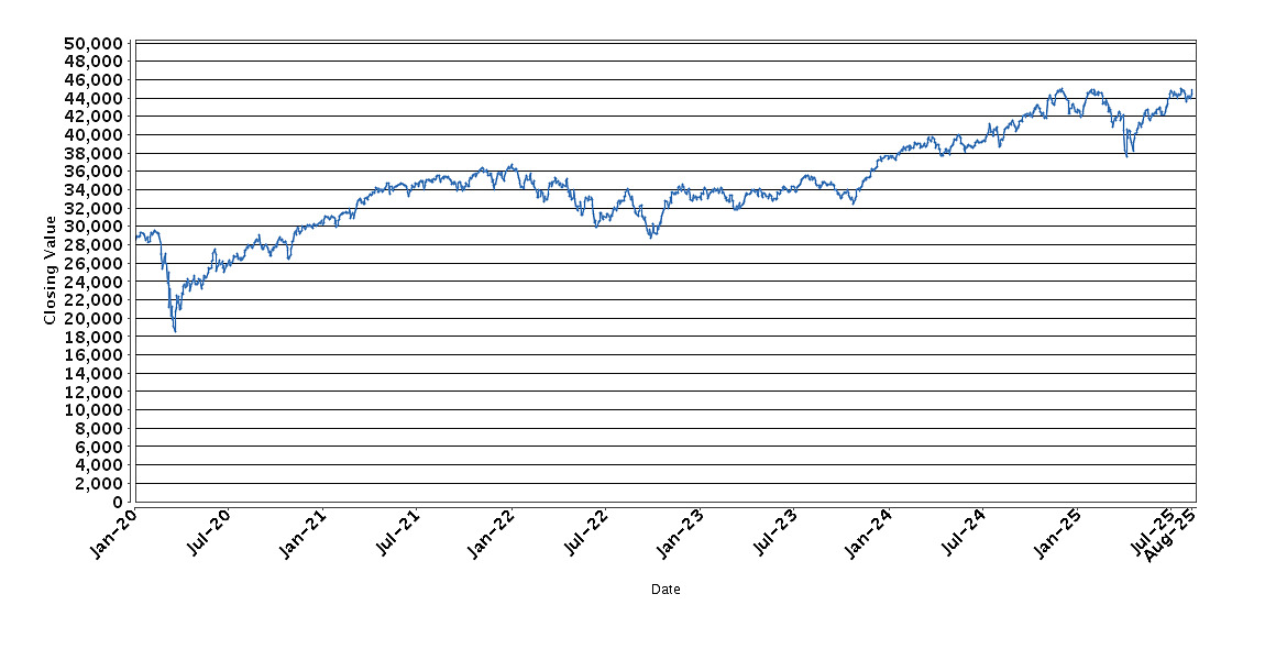 The graph below sets forth the historical performance of the INDU Index based on the daily Closing Value from January 6, 2020 through August 13, 2025. We obtained the Closing Values shown in the graph below from Bloomberg Professional® service (“Bloomberg”). We have not independently verified the accuracy or completeness of the information obtained from Bloomberg.