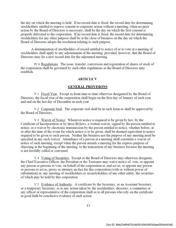 | ● | will not be required to obtain a non-binding advisory vote from our stockholders on executive compensation or golden parachute arrangements; | |
