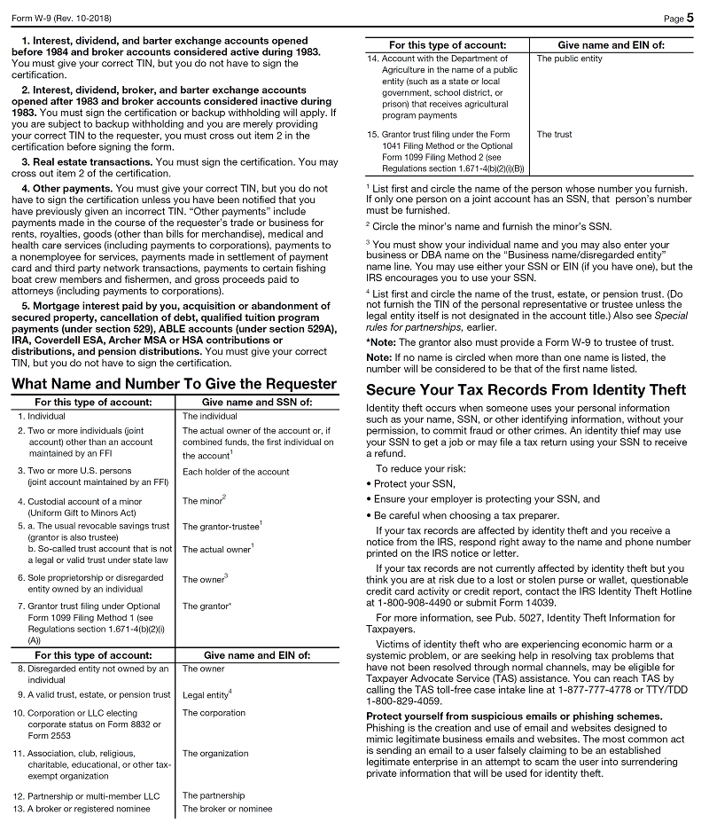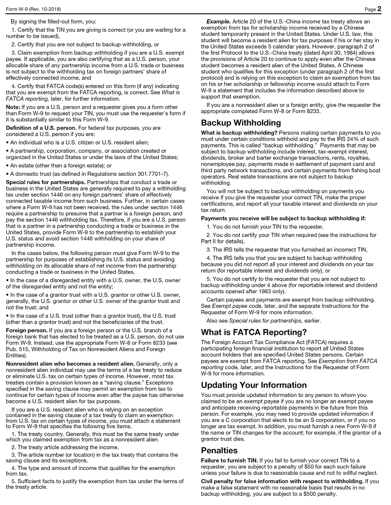 Exempt Holders of the Notes (including, among others, all corporations) are not subject to these backup withholding and reporting requirements. See the Instructions for the Requester of Form W-9 (the “W-9 Guidelines”) for additional instructions, which may be obtained via the IRS website at www.irs.gov.