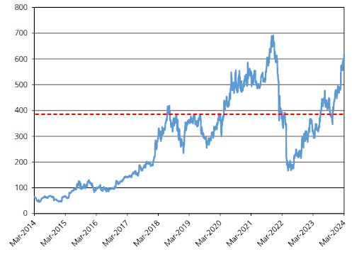$619.34, which was the Closing Price of the Reference Asset on the Strike Date, as determined by the Calculation Agent, and subject to adjustment as described under “General