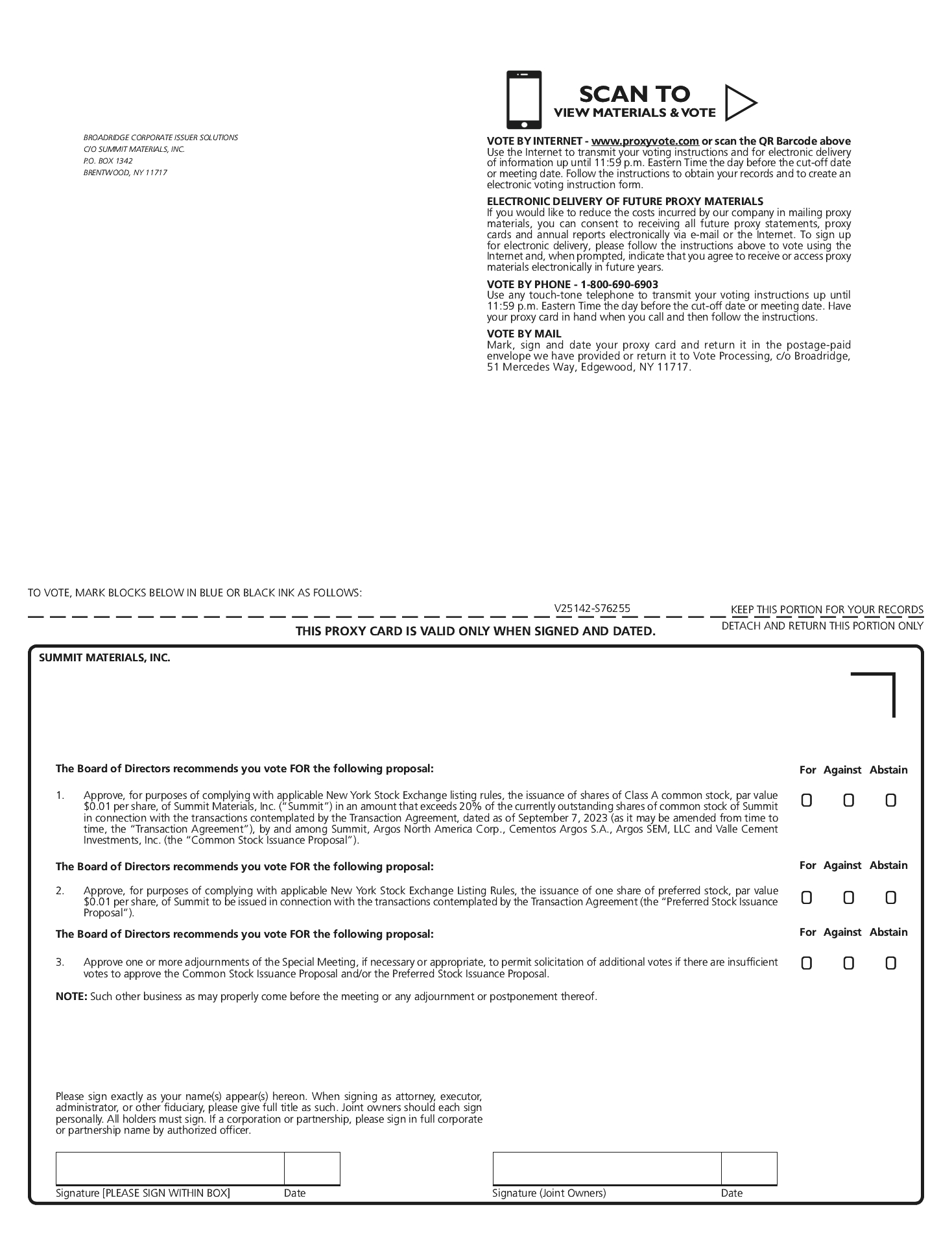 “Knowledge” or any other similar knowledge qualifier with respect to a Person’s awareness of the presence or absence of a fact, event or condition, means the knowledge, after reasonable inquiry, of (i) in the case of the Company, any of Camilo Restrepo, Kathleen Phelps, Felipe Aristizabal, Juan Esteban Calle and Simon Bates (ii) in the case of Summit, any of Scott Anderson or Anne Noonan, and (iii) in the case of any of the Argos Parties, such Argos Party.