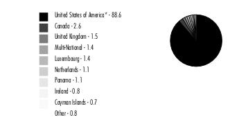 Percentages are based on country or territory of incorporation and are adjusted for the effect of derivatives, if applicable.