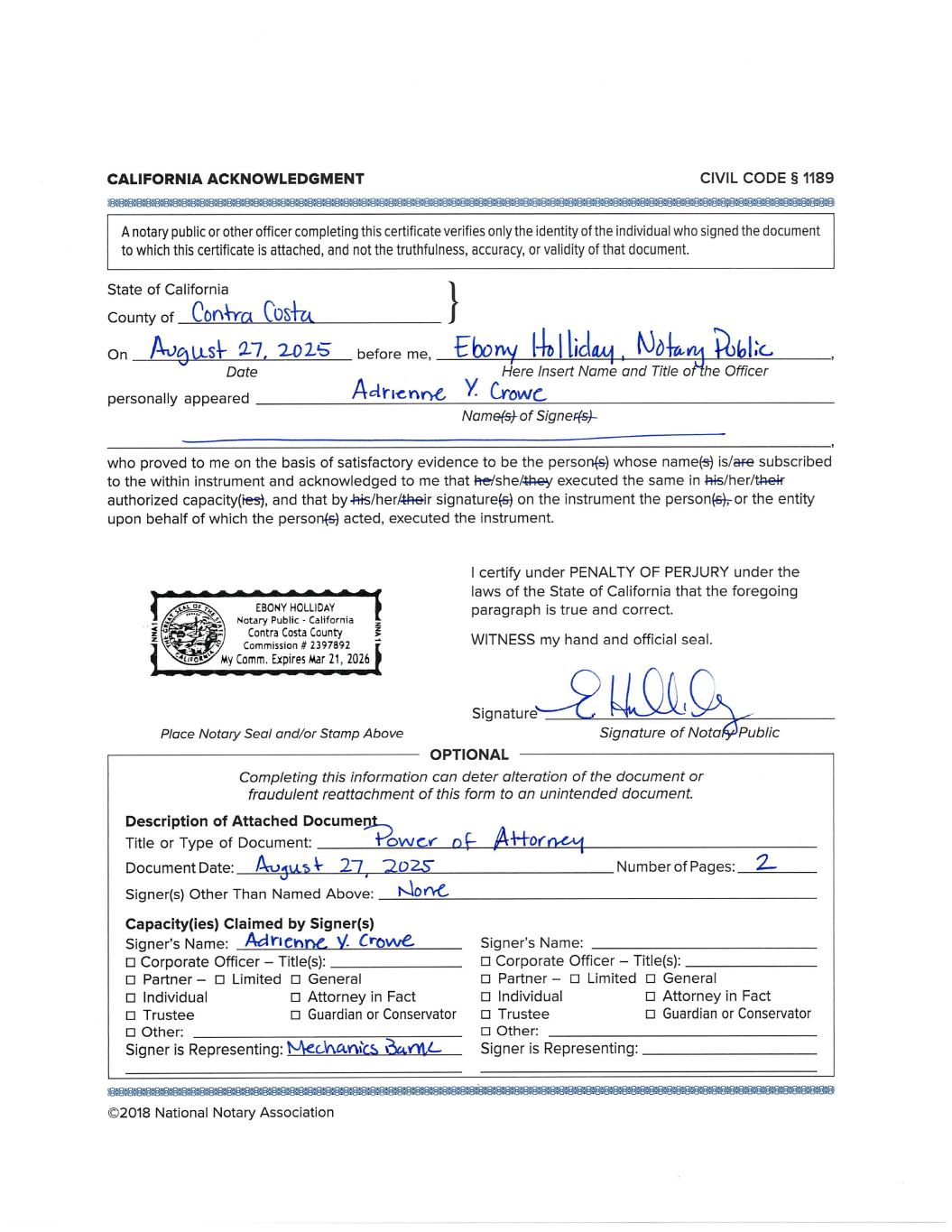 /s/ Glenn Shrader, Attorney in fact for Adrienne Y. Crowe | 02/03/2026 | |
