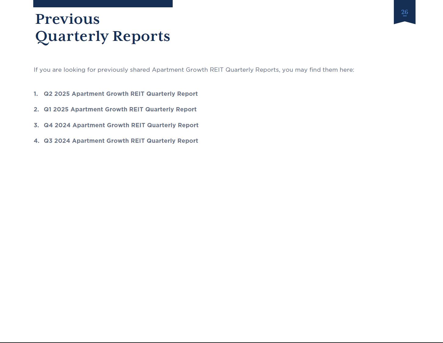 On January 16, 2026, RealtyMogul Apartment Growth REIT, Inc. issued an investor communication relating to financial information for the quarter ended September 30, 2025 and operational updates for the year ended December 31, 2025. A copy of the communication is attached hereto as Exhibit 99.1 and incorporated herein by reference.