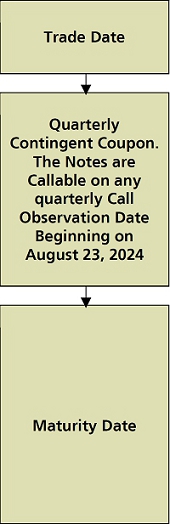 The Notes will be automatically called if the Closing Level of each Underlying on any quarterly Call Observation Date, commencing on August 23, 2024, is equal to or greater than its Initial Level. Each Coupon Determination Date on and after August 23, 2024 will also be a Call Observation Date. You will not receive any notice from us if the Notes are automatically called.