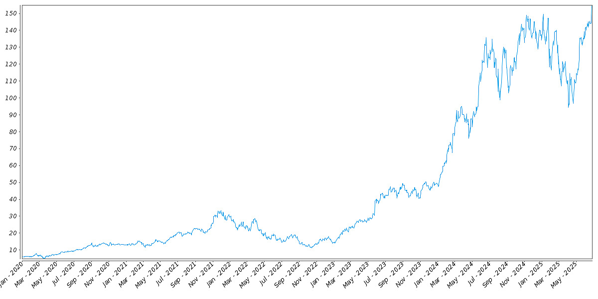 The following graph sets forth the daily historical performance of NVDA in the period from January 2, 2020 through June 26, 2025. We obtained this historical data from Bloomberg L.P. We have not independently verified the accuracy or completeness of the information obtained from Bloomberg L.P. The Closing Market Prices reflected in the graph below may have been adjusted to reflect certain corporate actions, such as stock splits and reverse stock splits. On June 26, 2025, the Closing Market Price of NVDA was $155.02.