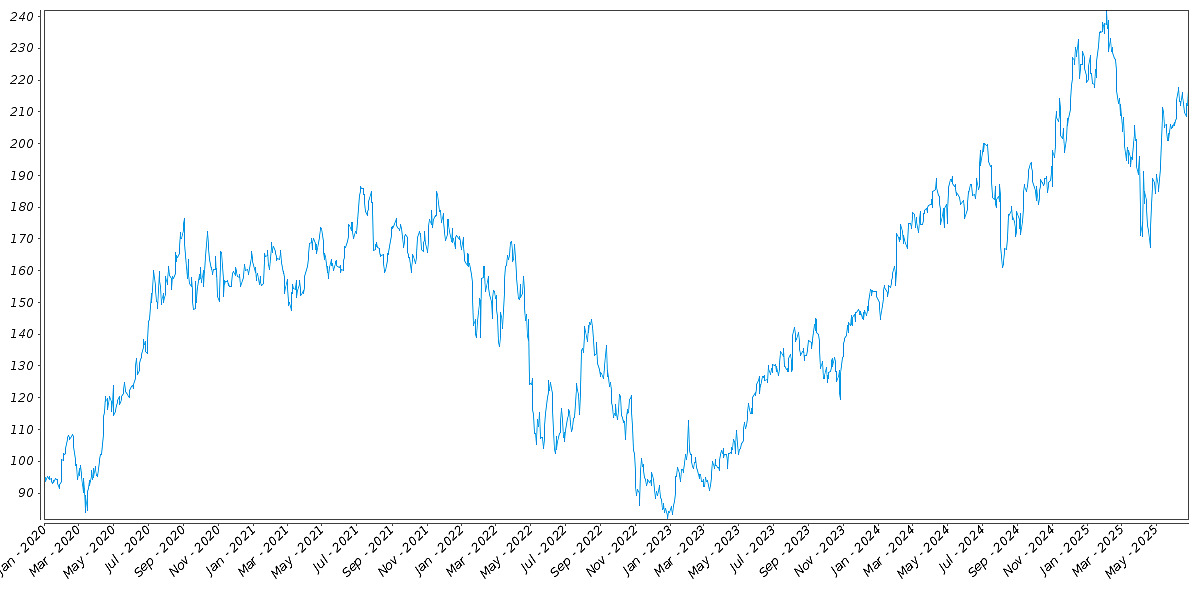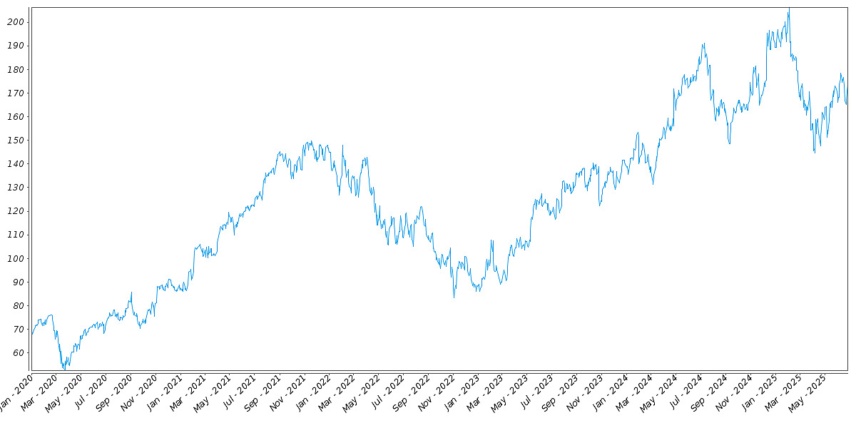 The following graph sets forth the daily historical performance of GOOGL in the period from January 2, 2020 through June 26, 2025. We obtained this historical data from Bloomberg L.P. We have not independently verified the accuracy or completeness of the information obtained from Bloomberg L.P. The Closing Market Prices reflected in the graph below may have been adjusted to reflect certain corporate actions, such as stock splits and reverse stock splits. On June 26, 2025, the Closing Market Price of GOOGL was $173.54.