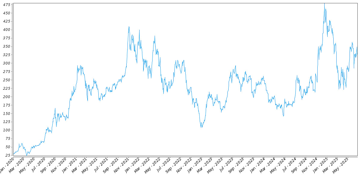 The following graph sets forth the daily historical performance of TSLA in the period from January 2, 2020 through June 26, 2025. We obtained this historical data from Bloomberg L.P. We have not independently verified the accuracy or completeness of the information obtained from Bloomberg L.P. The Closing Market Prices reflected in the graph below may have been adjusted to reflect certain corporate actions, such as stock splits and reverse stock splits. On June 26, 2025, the Closing Market Price of TSLA was $325.78.