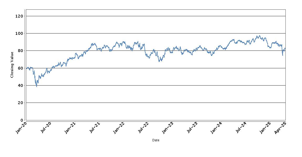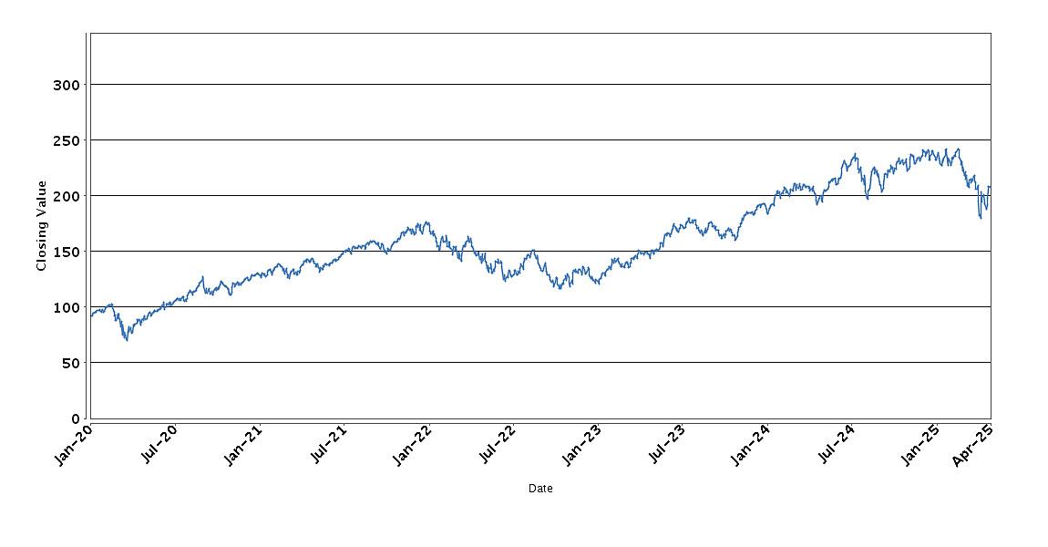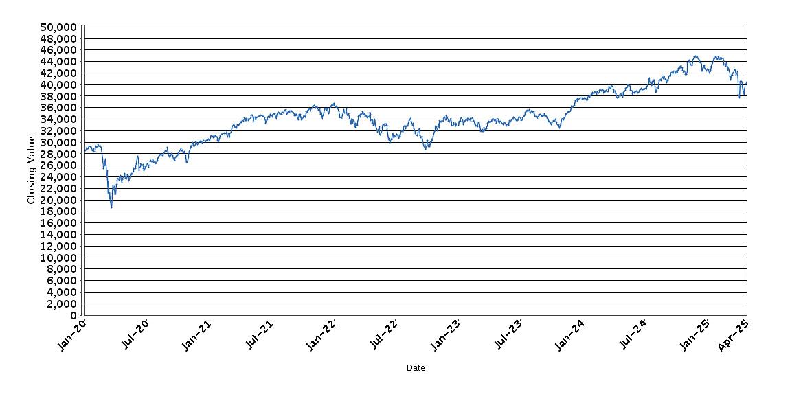 The graph below sets forth the historical performance of the INDU Index based on the daily Closing Value from January 6, 2020 through April 29, 2025. We obtained the Closing Values shown in the graph below from Bloomberg Professional® service (“Bloomberg”). We have not independently verified the accuracy or completeness of the information obtained from Bloomberg.