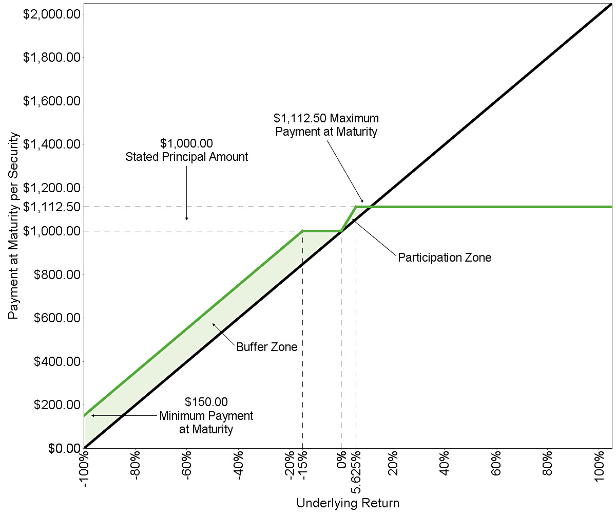 You may lose a significant portion of your investment. Unlike conventional debt securities, the securities do not repay a fixed amount of principal at maturity. Instead, your payment at maturity will depend on the performance of the underlying. If the underlying depreciates by more than the buffer percentage from the initial underlying value to the final underlying value, you will lose 1% of the stated principal amount of your securities for every 1% by which that depreciation exceeds the buffer percentage.