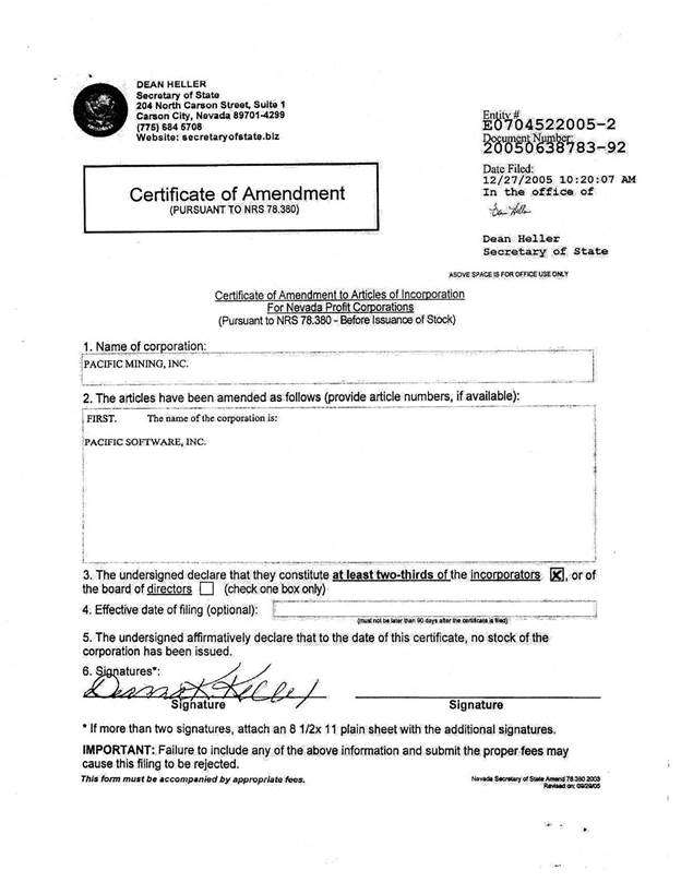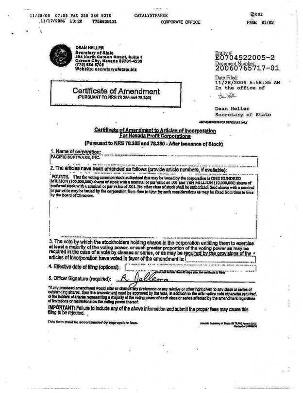 | Issuer: | Pacific Software, Inc. | |