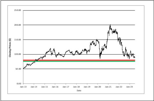 $79.87, which is 90% of the Initial Stock Price (rounded to two decimal places).