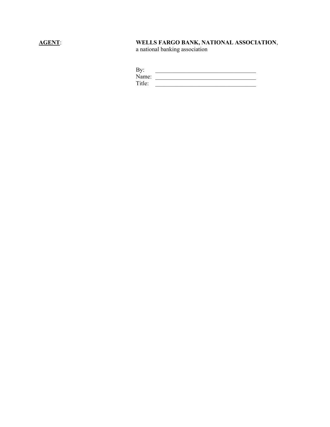 AGENT: WELLS FARGO BANK, NATIONAL ASSOCIATION, a national banking association By: __________________________________ Name: __________________________________ Title: __________________________________
