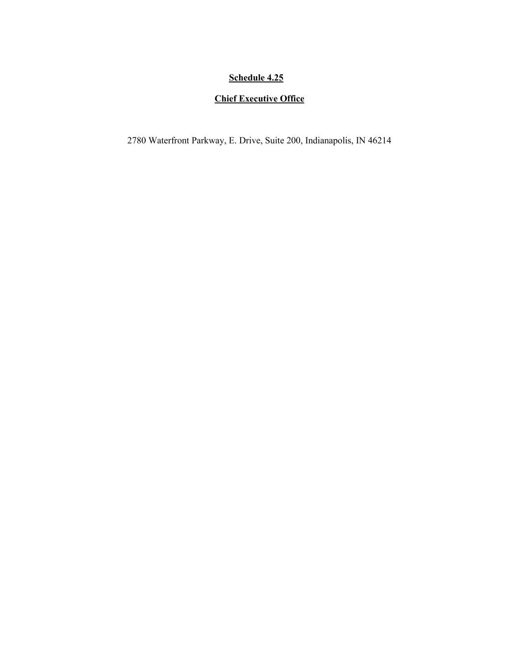 Schedule 4.25 Chief Executive Office 2780 Waterfront Parkway, E. Drive, Suite 200, Indianapolis, IN 46214