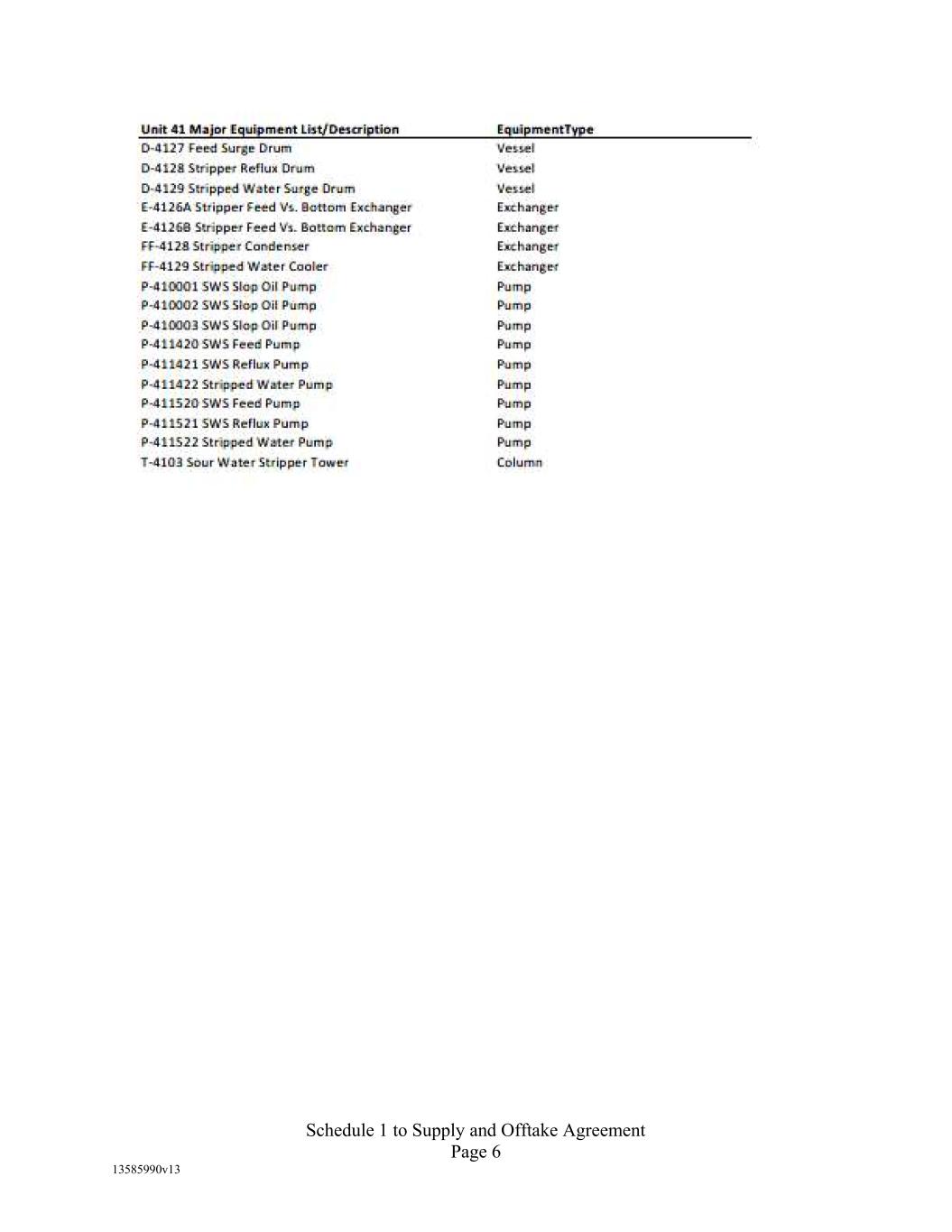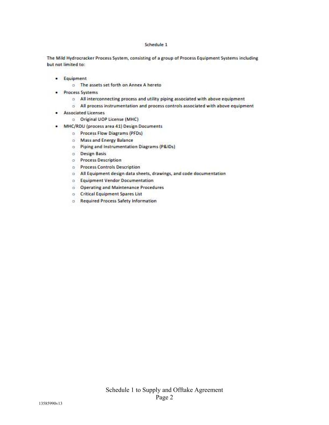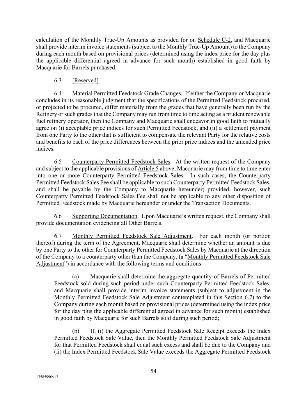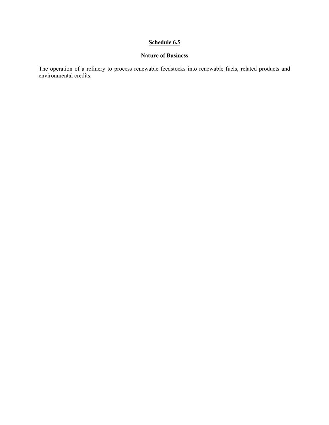 Schedule 6.5 Nature of Business The operation of a refinery to process renewable feedstocks into renewable fuels, related products and environmental credits.