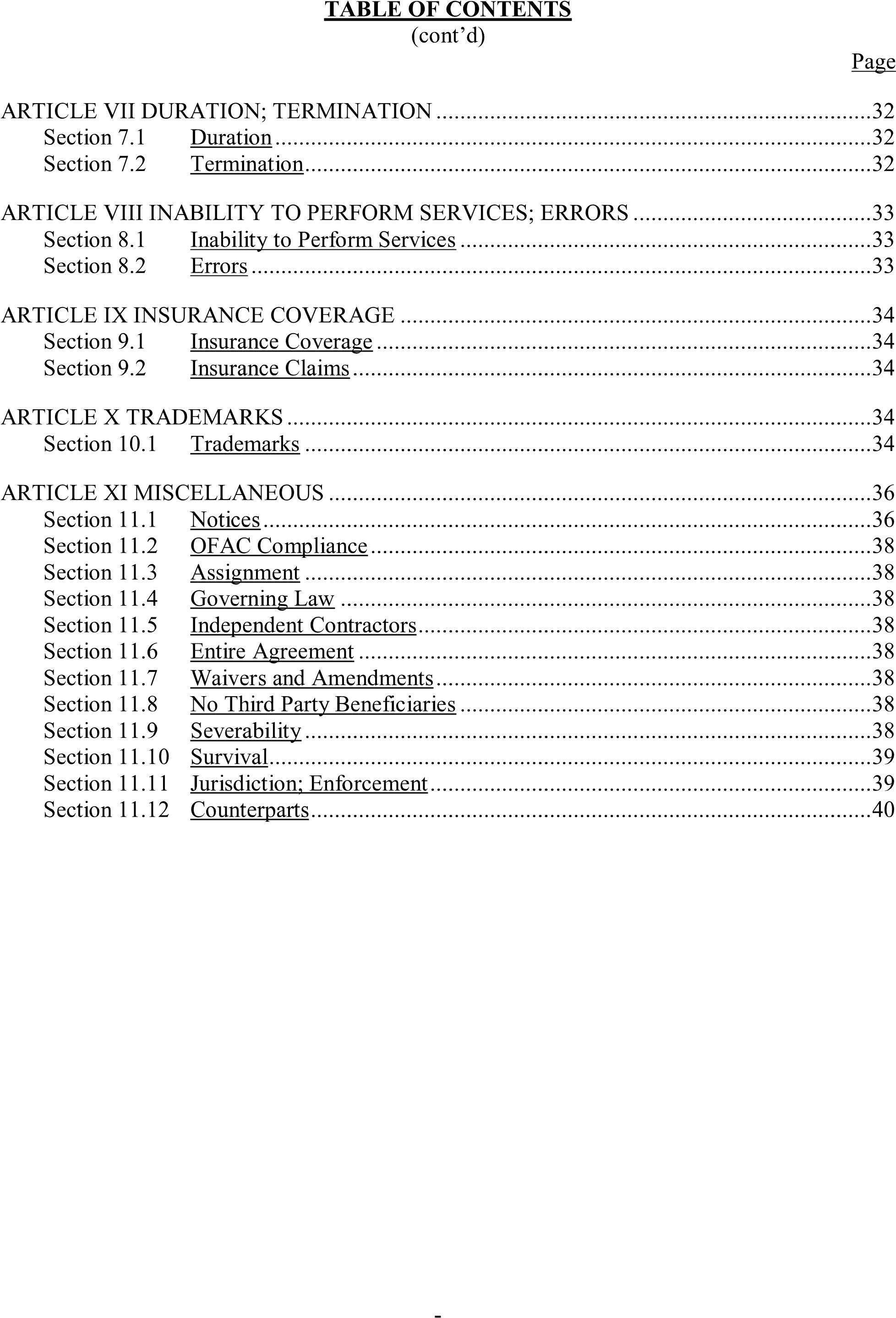 Waiver and Reduction of Fees and Charges ………………………………………………………………….. 31
