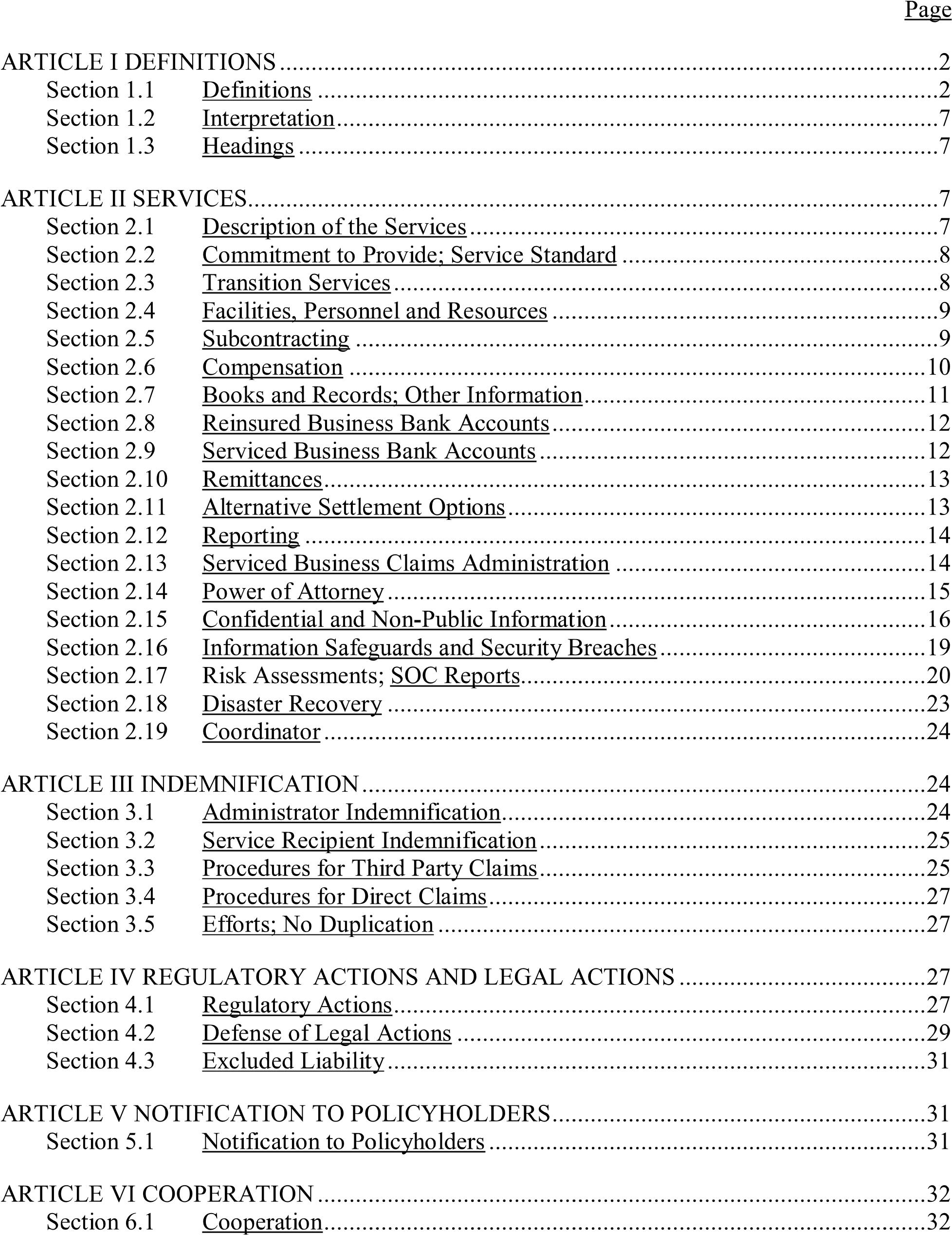Premium Payments ……………………………………………………………………………………………. 26