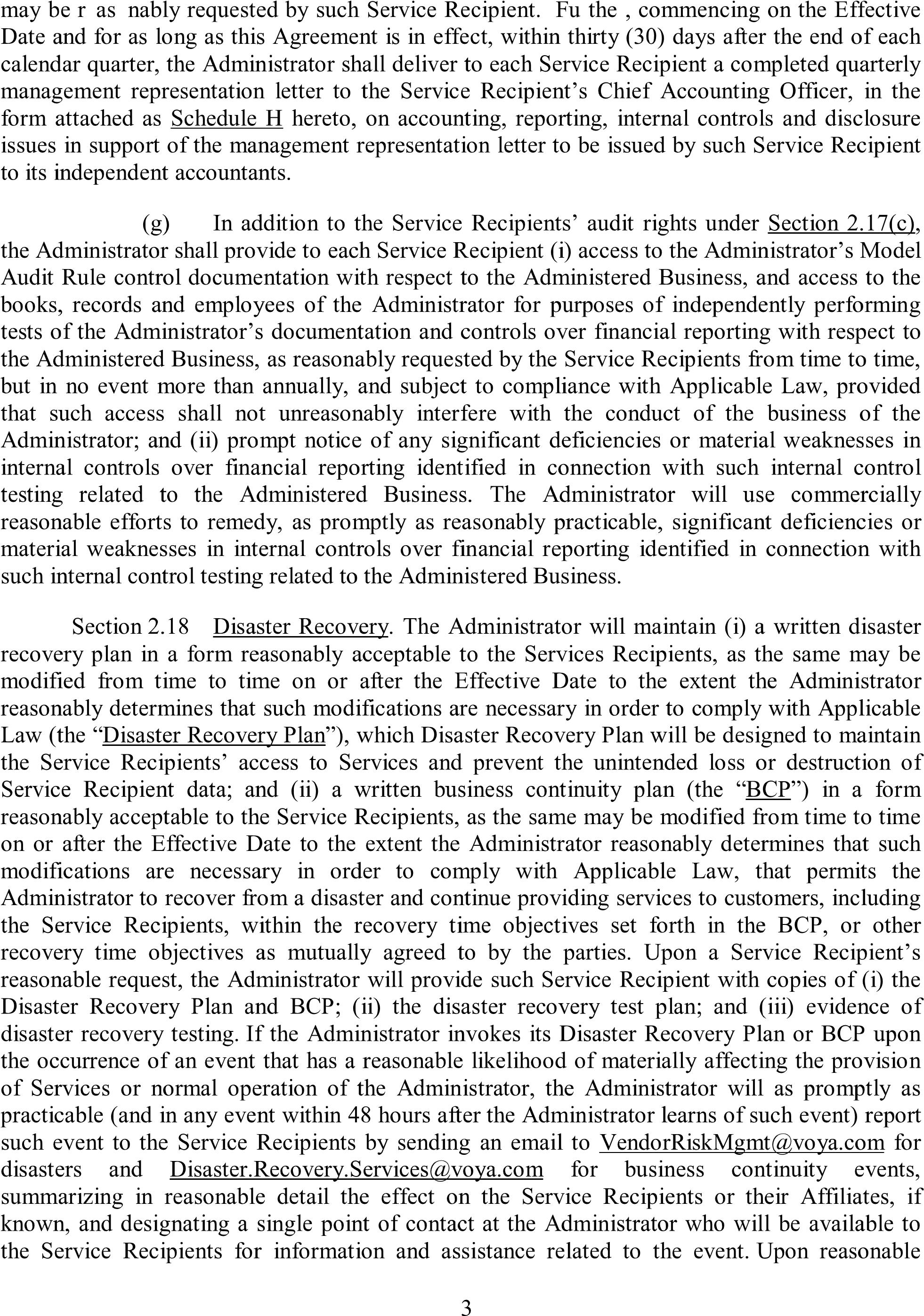 derivative transactions and the adequacy of organizational segregation of duties among the Company’s various departments, committees and divisions. The Internal Audit Department will periodically (as determined by the Company’s Board, ING, or US