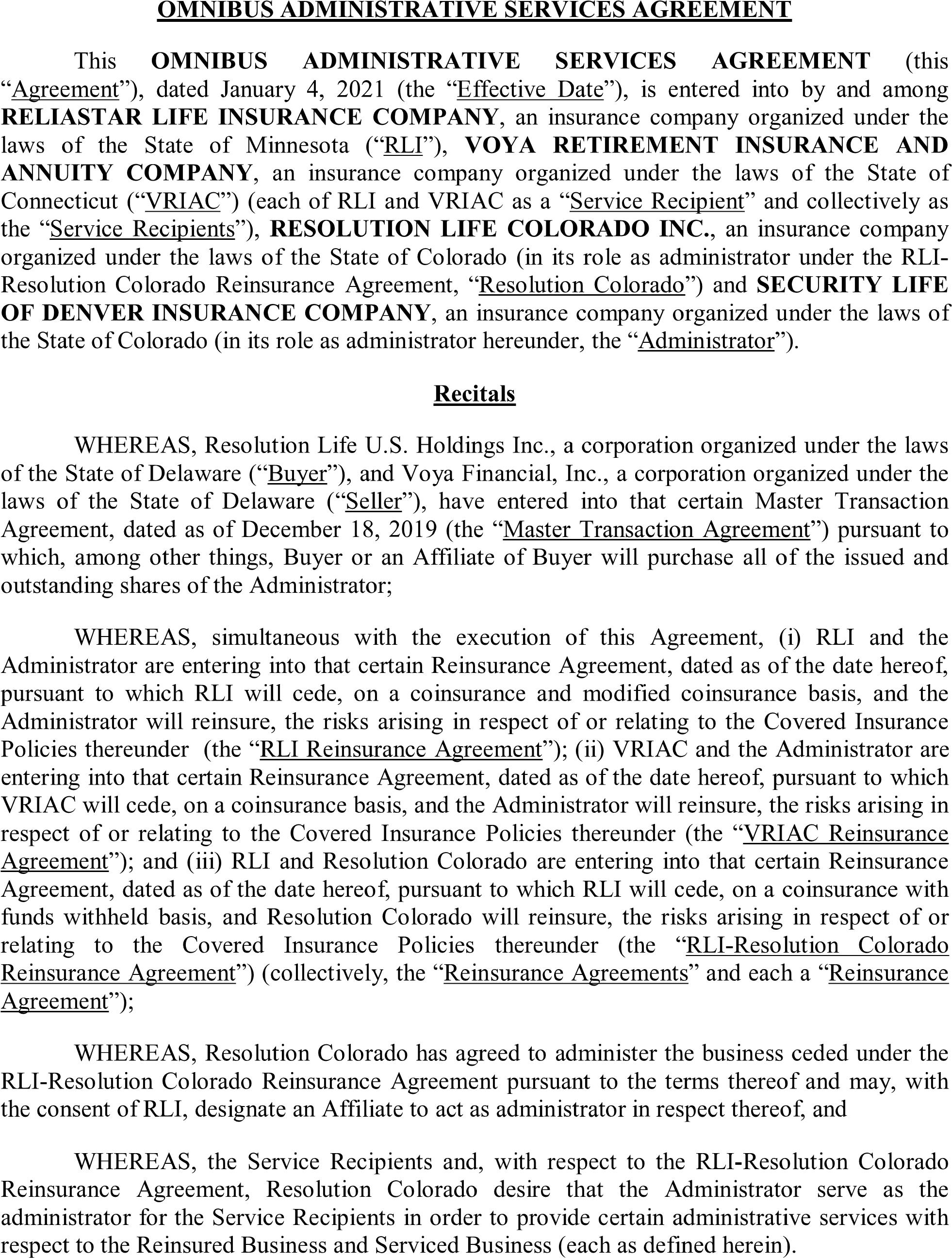 ReliaStar Life Insurance Company ……………………………………………………………………………. 18