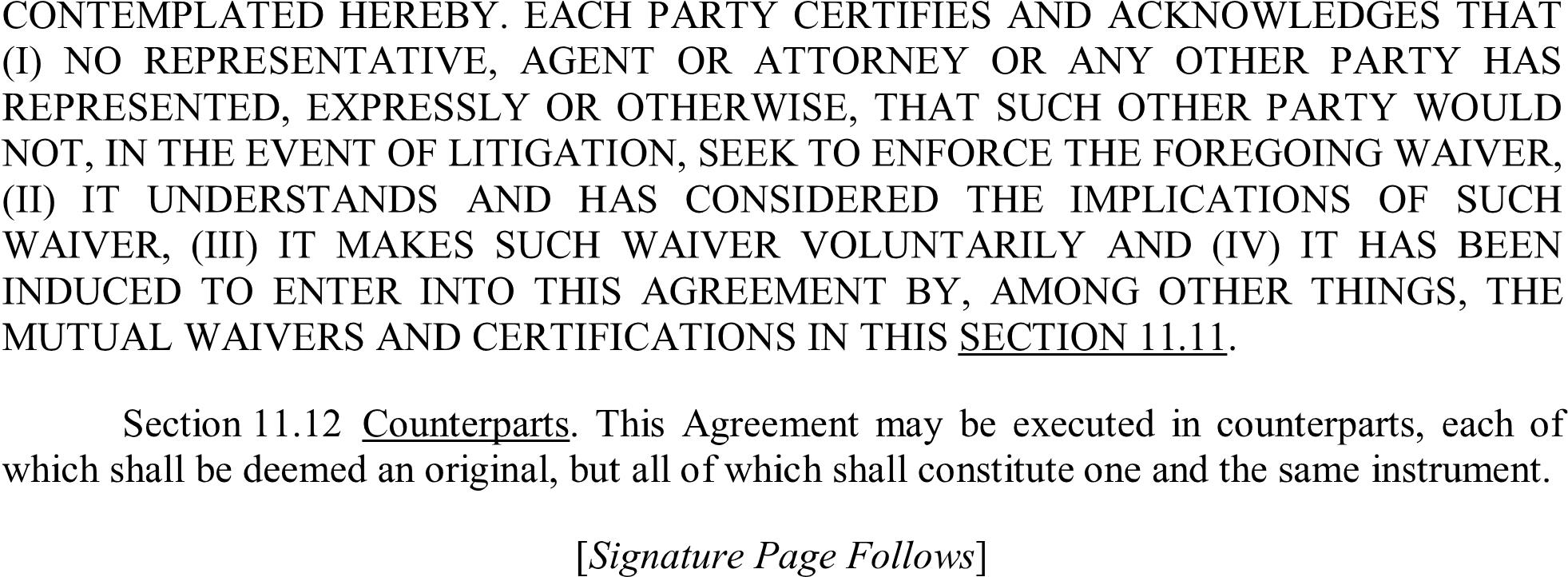 parties, (ii) a Minimum Transfer Amount of no more than one million dollars, and (iii) a requirement that collateral be provided by the counterparty from the first dollar of exposure, subject to the Minimum Transfer Amount.