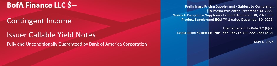 All payments on the Notes are subject to the credit risk of BofA Finance LLC (“BofA Finance” or the “Issuer”), as issuer of the Notes, and Bank of America Corporation (“BAC” or the “Guarantor”), as guarantor of the Notes.