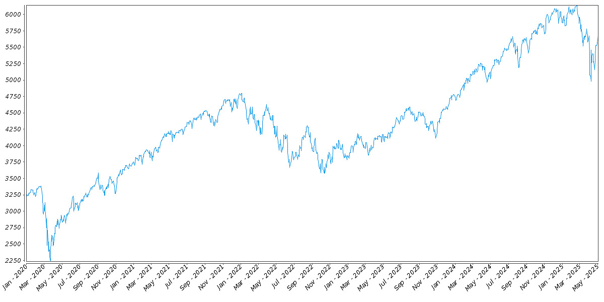 The following graph sets forth the daily historical performance of the SPX in the period from January 2, 2020 through May 2, 2025. We obtained this historical data from Bloomberg L.P. We have not independently verified the accuracy or completeness of the information obtained from Bloomberg L.P. On May 2, 2025, the closing level of the SPX was 5,686.67.
