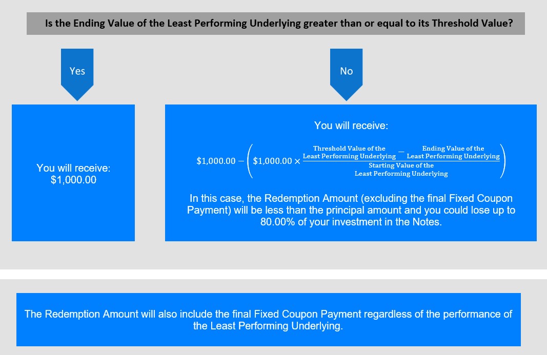 The Redemption Amount will also include the final Fixed Coupon Payment regardless of the performance of the Least Performing Underlying.