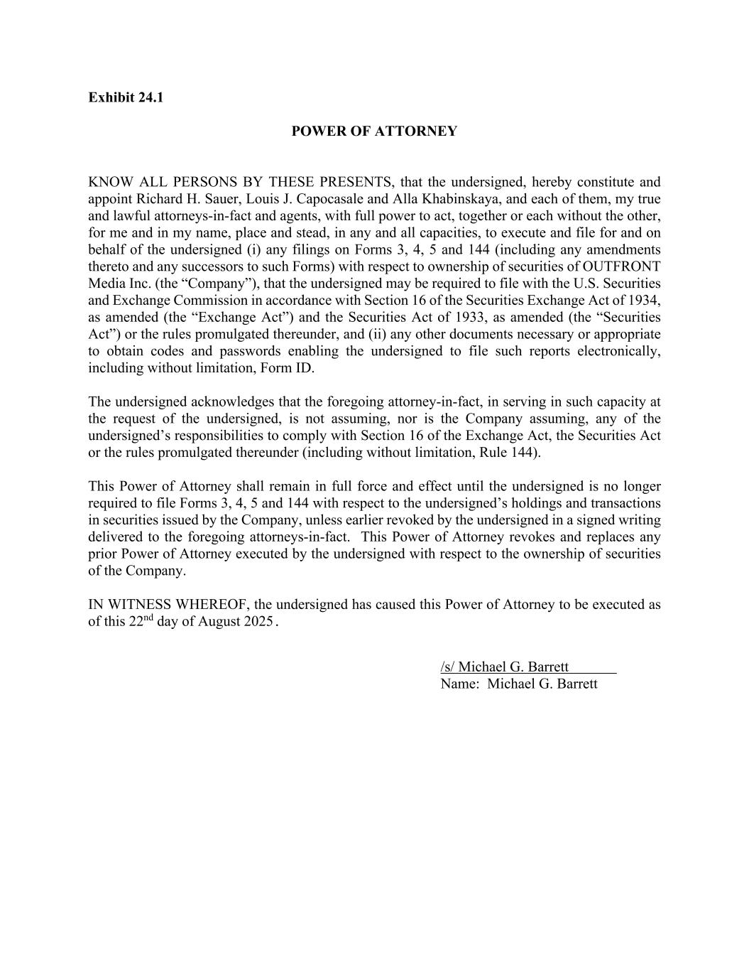 /s/ Louis Capocasale, Attorney-in-fact for Michael G. Barrett | 09/16/2025 | |