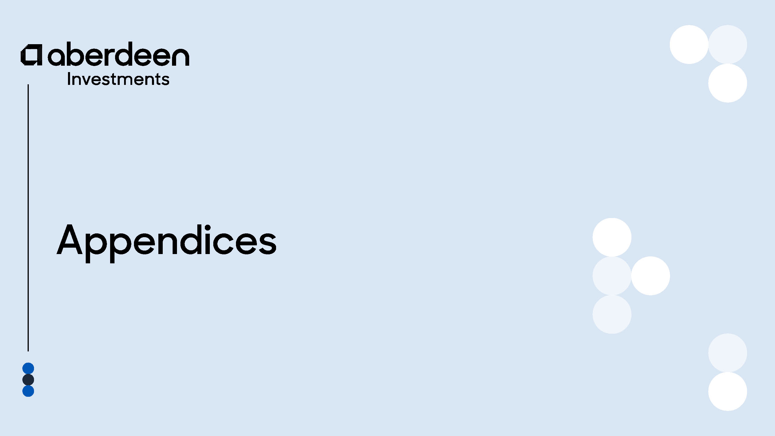 Multi-Market Income resources Source: Aberdeen, October 2025. Experienced and specialised portfolio management team Leveraging a global research footprint and assets class expertise Integration and insights gathered through daily interaction and formalised meeting structures covering: FI House view Global Aggregate asset allocation Security selection Portfolio Management Team Multi-Market Income Team Global High Yield George Westervelt Head of Global High Yield (27yrs exp.) Siddharth Dahiya Global Head of Emerging Market Debt (19yrs exp.) Emerging markets Global Credit Anthony Merola Senior Investment Manager (7yrs exp.) Jonathan Mondillo Global Head of Fixed Income (20yrs exp.) Opportunistic Global Fixed Income Team: 140+ London Edinburgh Boston New York Philadelphia Shanghai Hong Kong Bangkok Singapore US Developed market and global credit 17 Private credit 2 UK/EMEA Money markets and government bonds 15 Developed market and global credit 33 Emerging market debt (EMD) 13 Private credit 22 Money Markets 8 Cross asset class insights Govt. bond High yield Equity Real estate ESG Economists Risk 10