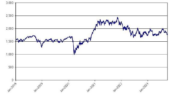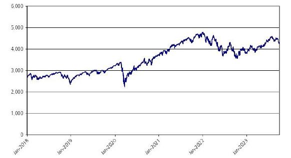 The following graph sets forth daily closing levels of the S&P 500® Index for the period from January 1, 2018 to September 29, 2023. The closing level on September 29, 2023 was 4,288.05.