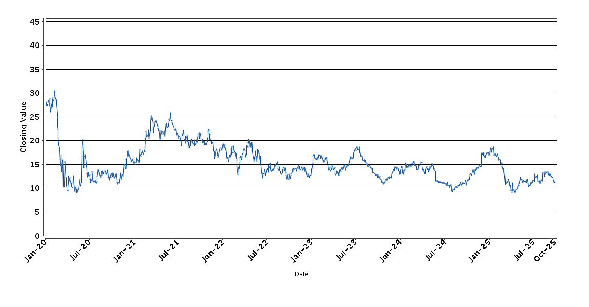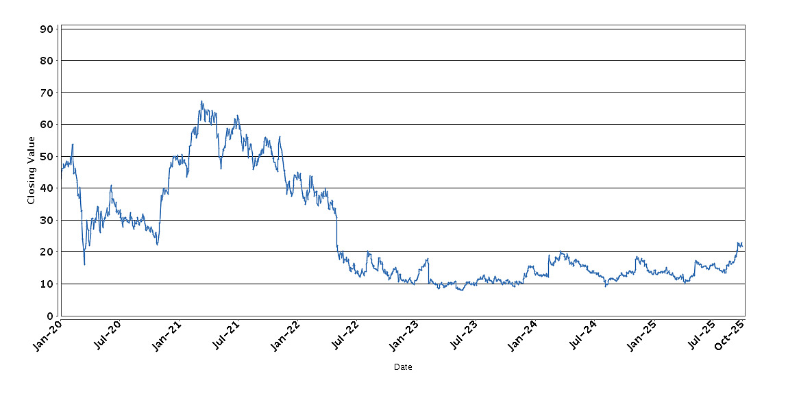 The graph below sets forth the historical performance of American Airlines Group Inc. based on the daily Closing Value from January 6, 2020 through October 1, 2025. We obtained the Closing Values shown in the graph below from Bloomberg. We have not independently verified the accuracy or completeness of the information obtained from Bloomberg. These historical closing values may have been adjusted to reflect certain corporate actions such as stock splits and reverse stock splits.