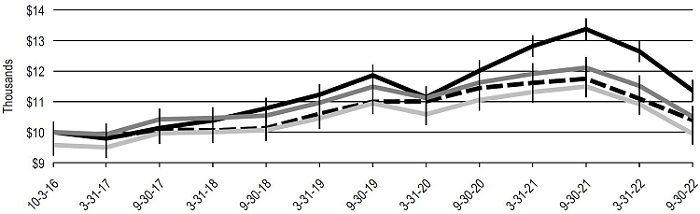 As the fiscal year ended September 30, 2022, progressed, investors’ initial optimism about US economic growth gradually gave way to concern that new COVID-19 variants – first Delta, then Omicron – would delay the country’s emergence from the pandemic. Over time, however, as it became evident that Omicron infections were milder for many people, day-to-day concerns about COVID-19 appeared to ease, and economic and health restrictions were gradually lifted.