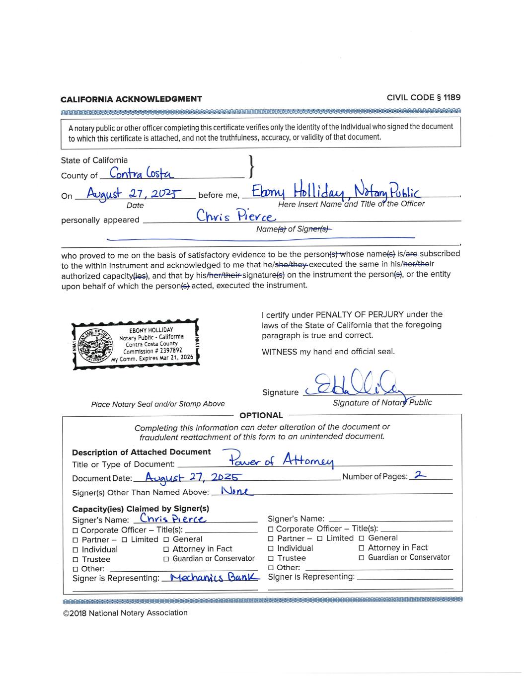 /s/ Glenn Shrader, Attorney in fact for Christopher D. Pierce | 01/05/2026 | |