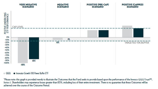 The Fund’s strategy has been specifically designed to produce the Outcomes based upon the performance of the Underlying ETF’s share price (or its “price return”) over the duration of the Outcome Period, subject to the “Cap” and “Buffer” described herein. The Fund will not receive or benefit from any dividend payments made by the Underlying ETF. The Fund is not an appropriate investment for income-seeking investors. If the Underlying ETF’s share price increases over the duration of the Outcome Period, the Fund seeks to provide investors that hold Shares for the entire Outcome Period with an increase in value that approximately matches the percentage increase experienced by the Underlying ETF’s share price over the duration of the Outcome Period, up to an upside return cap (the “Cap”) that represents the maximum percentage return an investor can achieve from an investment in the Fund for the Outcome Period. Therefore, even though the Fund’s returns are based upon the performance of the Underlying ETF’s share price, if the Underlying ETF’s share price experiences returns for the Outcome Period in excess of the Cap, Fund shareholders will not participate in such excess returns. Additionally, the Fund seeks to provide shareholders that hold Shares for the entire Outcome Period with a buffer (the “Buffer”) against the first 15% of Underlying ETF losses during the Outcome Period. “Power” denotes the Fund’s objective to provide returns that are buffered by up to 15% if the Underlying ETF’s share price experiences a loss during the course of the Outcome Period. The Fund’s shareholders will bear all Underlying ETF losses exceeding 15% on a one-to-one basis. For additional information regarding the Buffer, see “Principal Investment Strategies–Buffer” below.