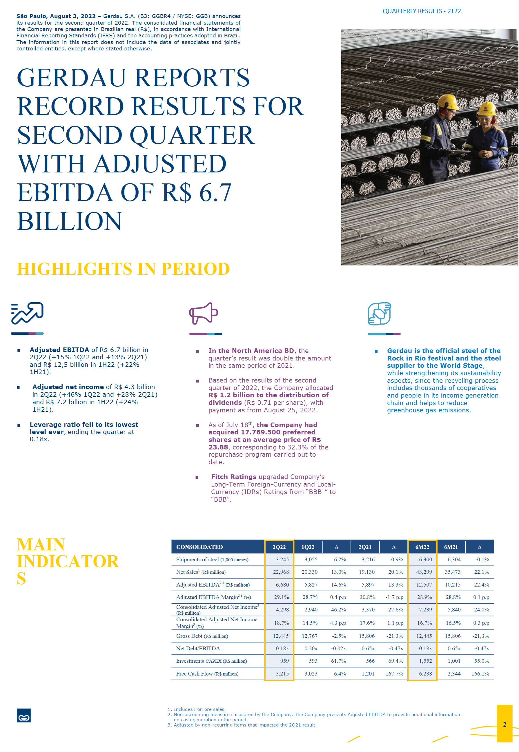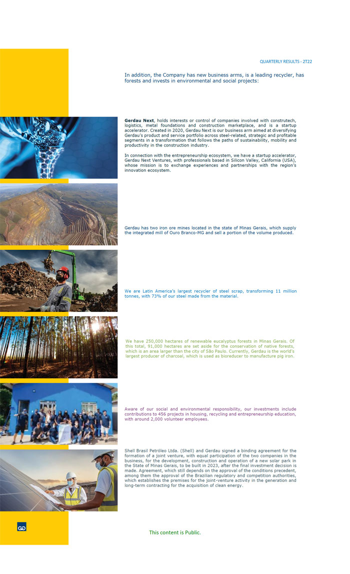 | 99.1 | GERDAU S.A. Quarterly Results 2Q22 | |
