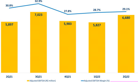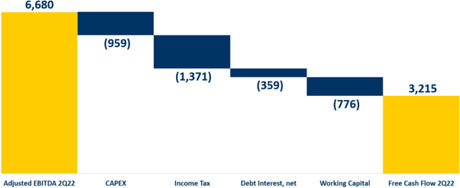 In 2Q22, adjusted EBITDA was R$ 6.7 billion, with adjusted EBITDA margin of 29.1%, expanding 0.4 p.p. on the prior quarter. This increase in profitability is a direct result of the current stage of demand and prices in the steel industry, the latter as a reflection of the higher costs, added to the capacity of the teams to capture market opportunities.
