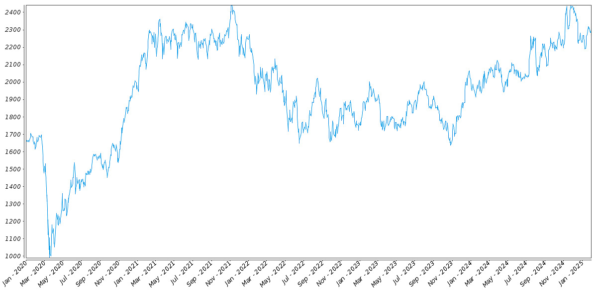 The following graph sets forth the daily historical performance of the RTY in the period from January 2, 2020 through January 30, 2025. We obtained this historical data from Bloomberg L.P. We have not independently verified the accuracy or completeness of the information obtained from Bloomberg L.P. On January 30, 2025, the closing level of the RTY was 2,307.451.