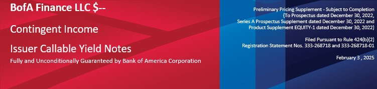 All payments on the Notes are subject to the credit risk of BofA Finance LLC (“BofA Finance” or the “Issuer”), as issuer of the Notes, and Bank of America Corporation (“BAC” or the “Guarantor”), as guarantor of the Notes. |