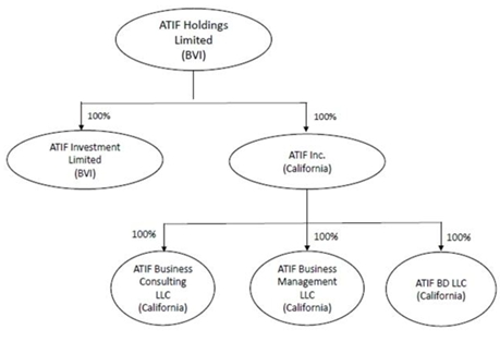 We are a British Virgin Islands business company. We are a business consulting company providing financial consulting services to small and medium-sized enterprises (“SMEs”) and prior to August 1, 2022, our Affiliated Entity ATIF USA, managed a private equity fund with approximately $1.3 million assets under management (“AUM”). Since our inception in 2015, the main focus of our consulting business has been providing comprehensive going public consulting services designed to help SMEs become public companies on suitable stock markets and exchanges. Our goal is to become an international financial consulting company with clients and offices throughout North America and Asia. In order to expand our business with a flexible business concept and reach our goal of high growth revenue and strong profit growth, on January 4, 2021, we opened an office in California, USA, through our wholly owned subsidiary ATIF USA. Our clients located within United States are serviced by ATIF USA. ATIF relies on a professional service team, who is rich in business consulting experiences, extensive social relations, and international integrated services, to make the IPO process as easy as possible for its clients. We operate with competitive fee schedules and in the cases of clients with attractive financial performance and/or great growth potential, we would offer the option of paying no fees upfront.
