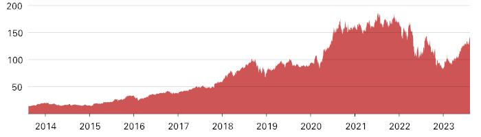 The following graph sets forth the historical performance of AMZN based on the daily historical closing values from August 12, 2013 through August 11, 2023. We obtained the closing values below from the Bloomberg Professional® service. We have not undertaken any independent review of, or made any due diligence inquiry with respect to, the information obtained from the Bloomberg Professional® service.![]() |
