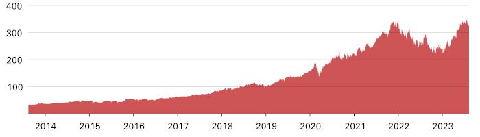 The following graph sets forth the historical performance of AAPL based on the daily historical closing values from August 12, 2013 through August 11, 2023. We obtained the closing values below from the Bloomberg Professional® service. We have not undertaken any independent review of, or made any due diligence inquiry with respect to, the information obtained from the Bloomberg Professional® service.![]() |