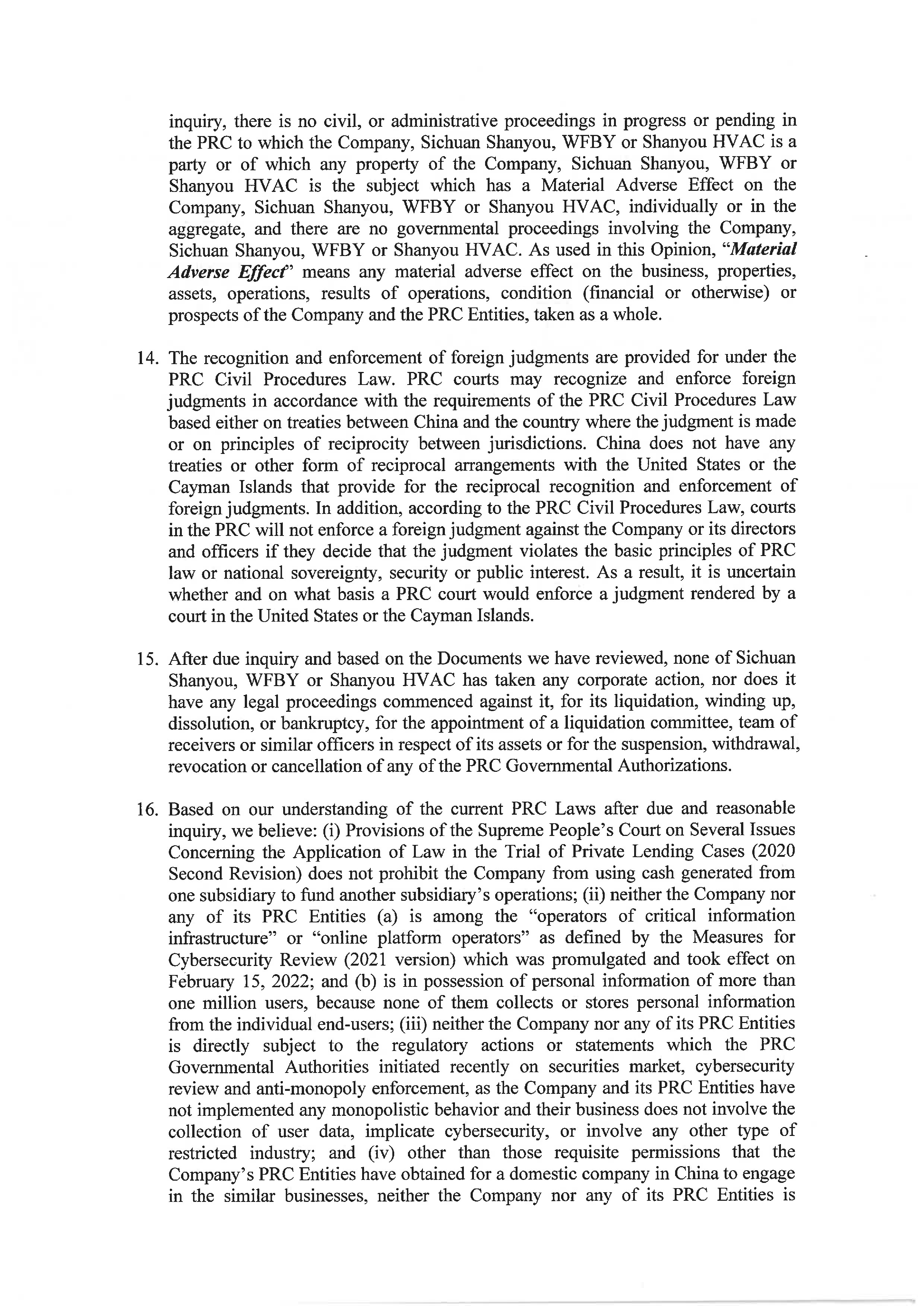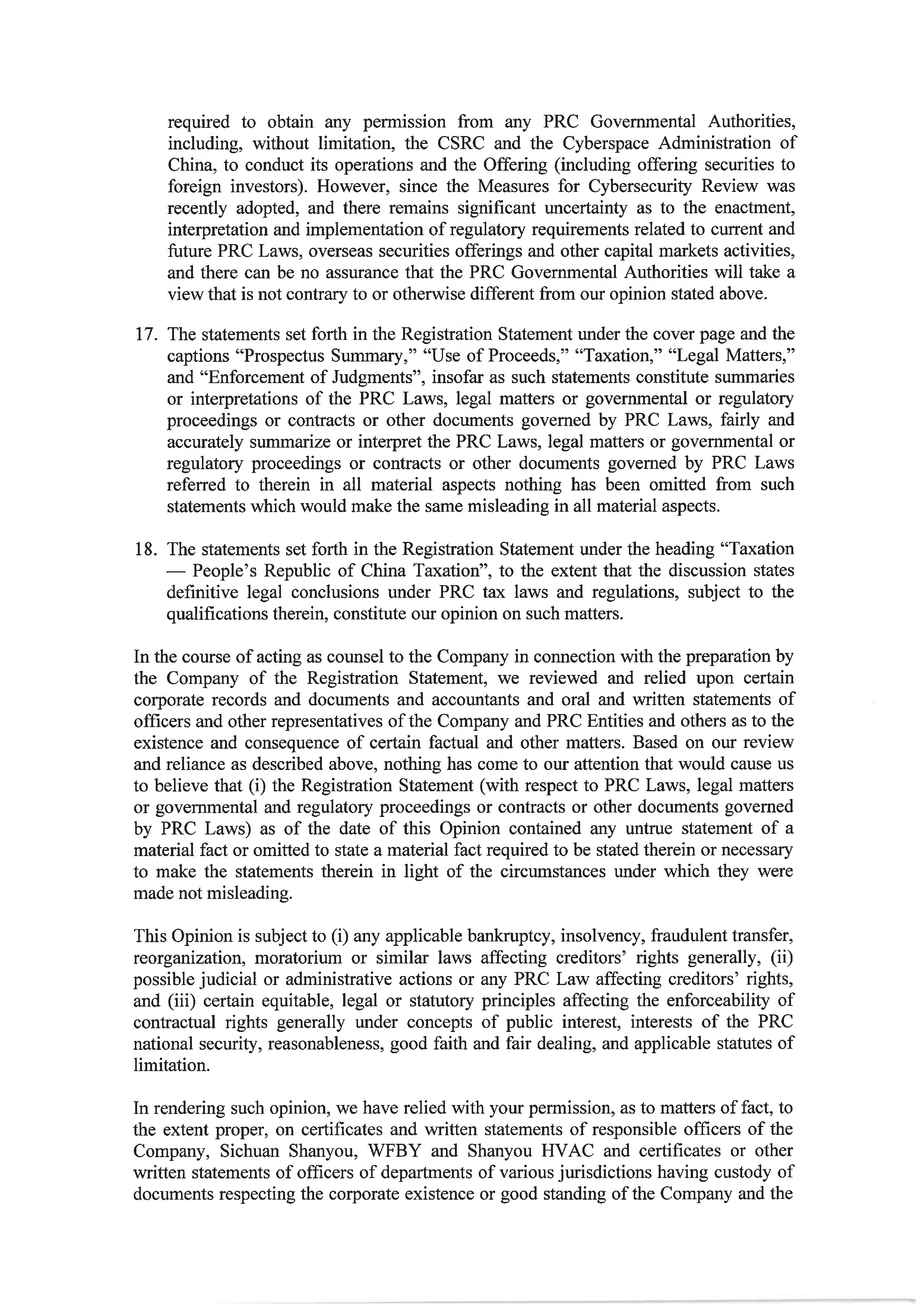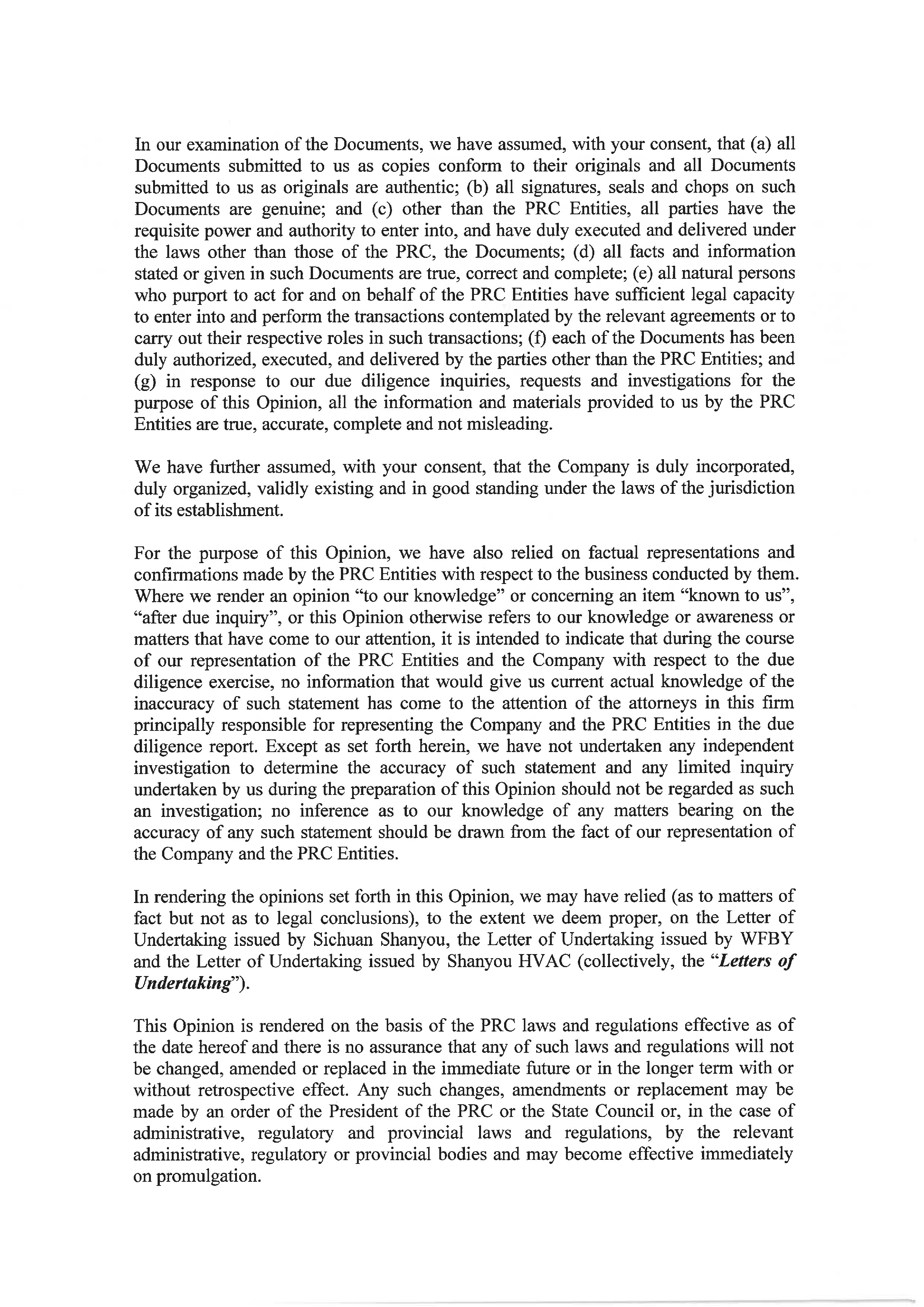 | “Shanyou HVAC” | Chengdu Shanyou HVAC Engineering Co., Ltd., a PRC limited liability company and wholly owned subsidiary of Sichuan Shanyou. | |