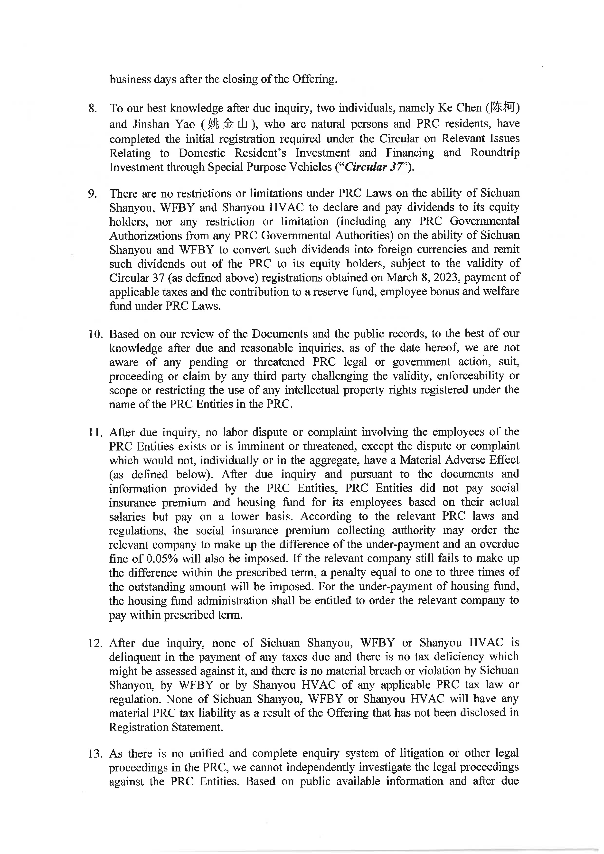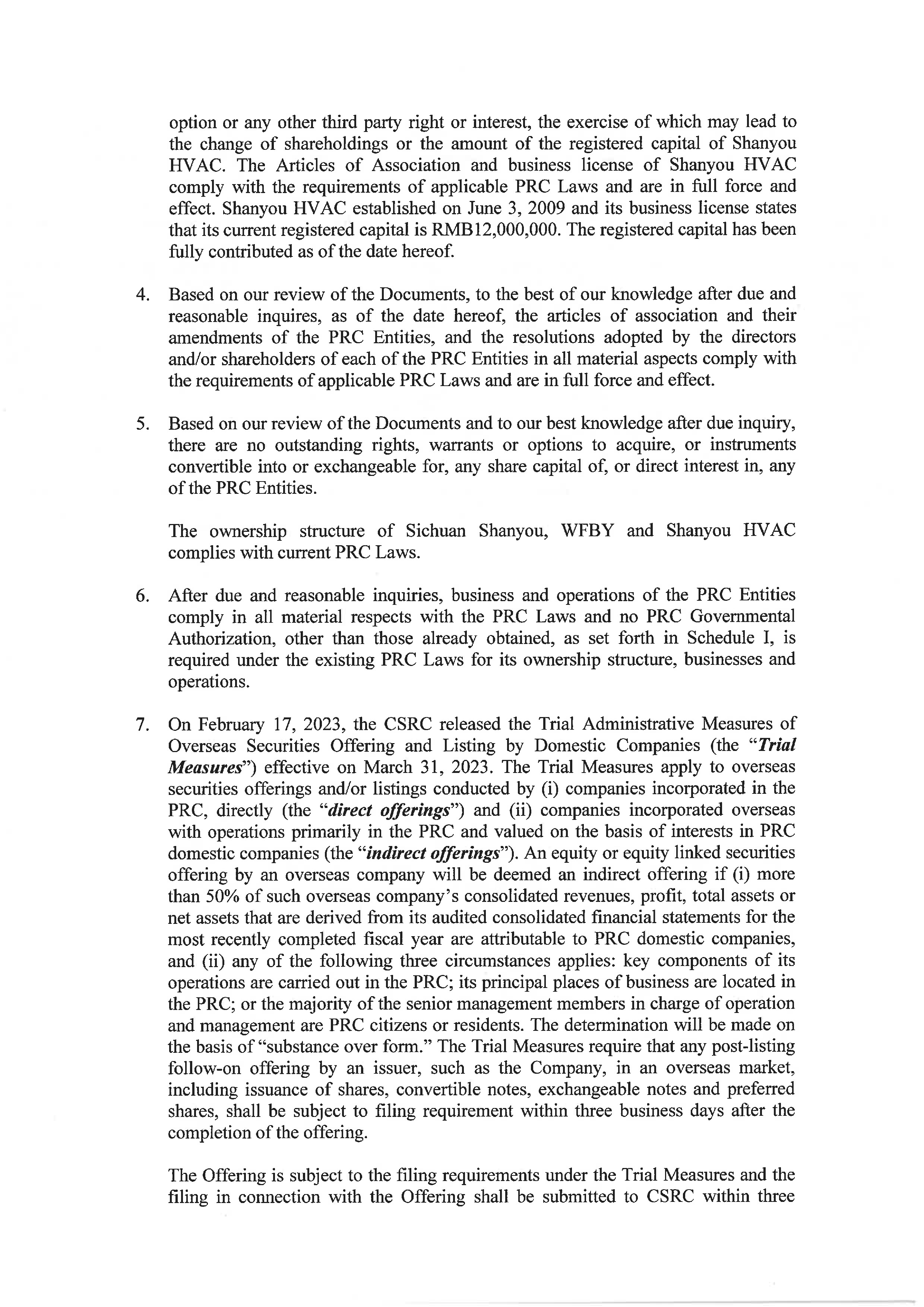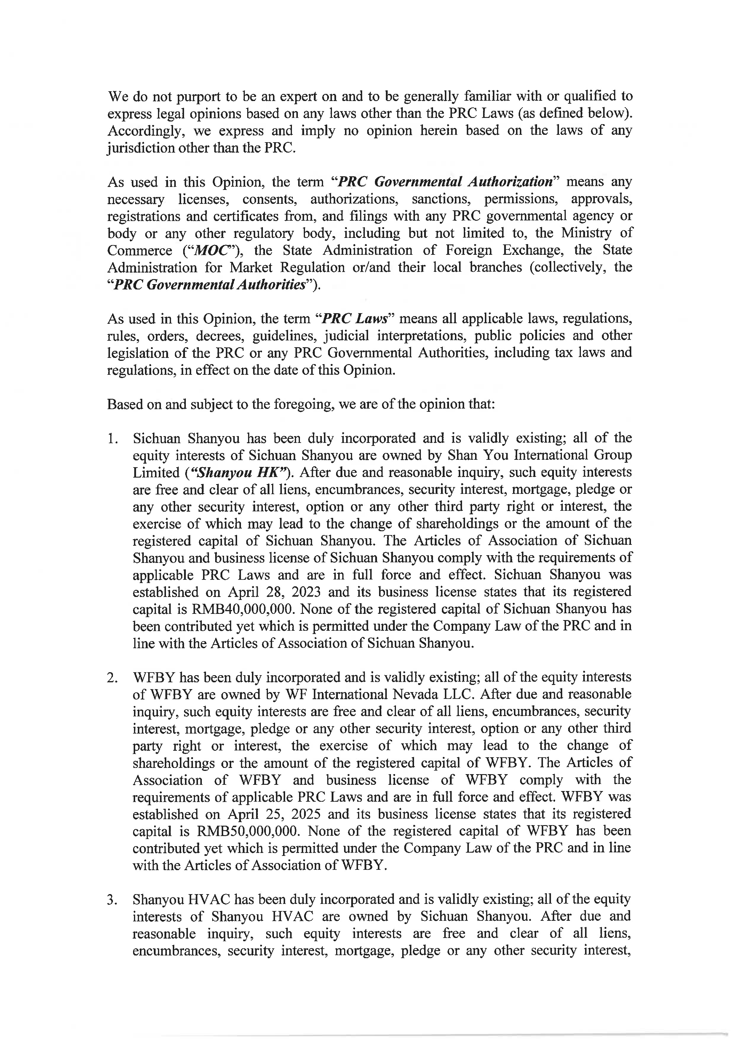 | “Shanyou HVAC” | Chengdu Shanyou HVAC Engineering Co., Ltd., a PRC limited liability company and wholly owned subsidiary of Sichuan Shanyou. | |
