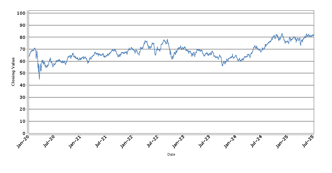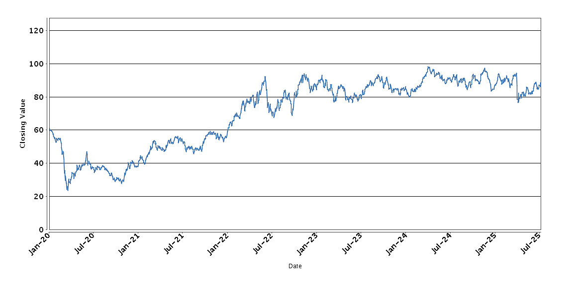The graph below sets forth the historical performance of the XLU Fund based on the daily Closing Value from January 6, 2020 through July 9, 2025. We obtained the Closing Values shown in the graph below from Bloomberg Professional® service (“Bloomberg”). We have not independently verified the accuracy or completeness of the information obtained from Bloomberg.